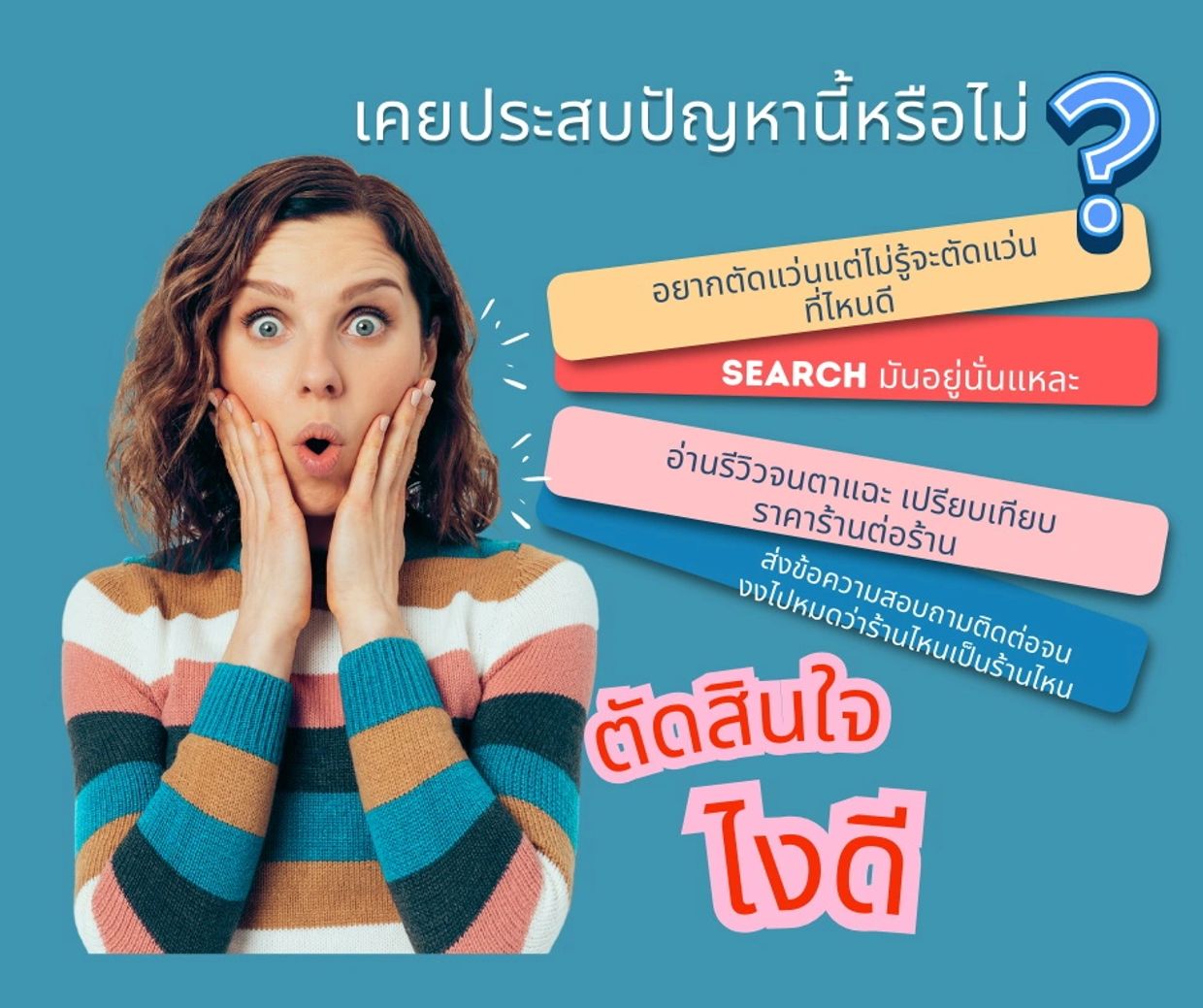 ตรวจวัดสายตาโดยนักทัศนมาตร ทางร้านจะตรวจวัดสายตาอย่างละเอียดประมาณ 30 -45 นาที ควรพักผ่อนให้เพียงพอคืนก่อนหน้าวันนัด
